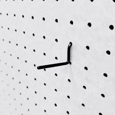 フックで自由自在にカスタマイズ 有孔ボードに取り付け可能なフックにより、自由なカスタマイズが可能です。
